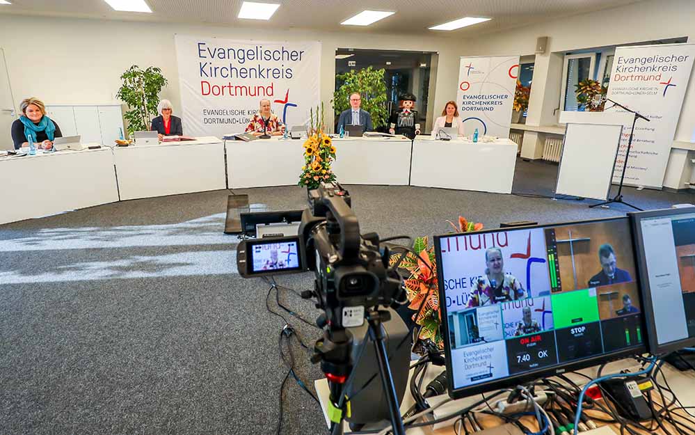 Zum zweiten Mal innerhalb eines Vierteljahres trat die Kreissynode des Evangelischen Kirchenkreises Dortmund virtuell zusammen. Das oberste Entscheidungsorgan der Evangelischen Kirche in Dortmund, Lünen und Selm führte am Montag seine reguläre Herbsttagung durch. Nach den guten Erfahrungen der vergangenen Synodentagung und aufgrund anhaltend hoher Infektionszahlen in der Corona-Pandemie traf sich die Kreissynode unter der Leitung von Superintendentin Heike Proske erneut digital, live gestreamt und moderiert aus dem Haus der Evangelischen Kirche in der Dortmunder Jägerstraße.