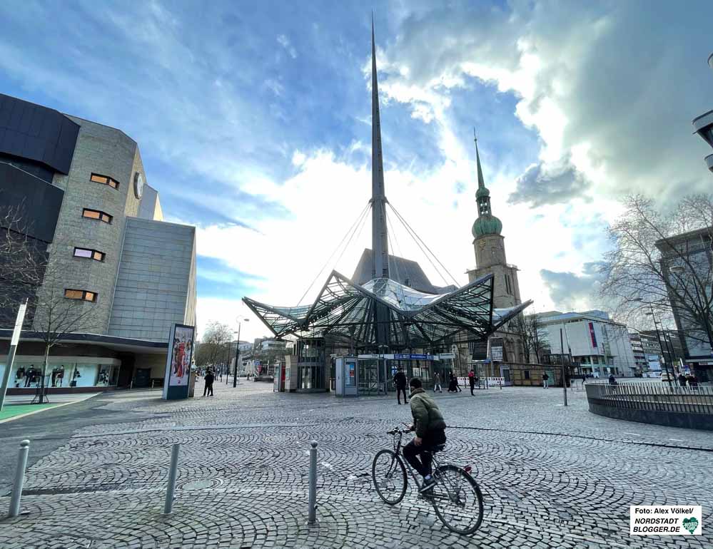 Boulevard Kampstraße – Start des vierten Bauabschnitts am Pylon an der Reinoldikirche (PM)