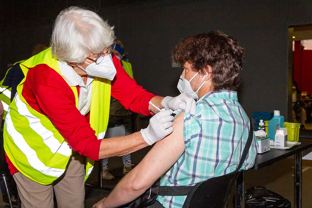 Insgesamt haben sich 300 Personen im Vorfeld für diese Booster-Impfaktion angemeldet. Der Andrang ist groß- die Warteliste für weitere Interessenten ist bereits bis oben hin gefüllt.