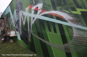 Graffiti Aktion am Schleswiger Platz. Hannes hat das Bild geschaffen