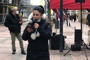 Rednerin Berivan vom Verein der kurdischen Aleviten in Dortmund sowie der Organisation der kurdischen Frauen in Deutschland, hält den Austritt der Türkei aus der Istanbul-Konvention für nicht akzeptabel und fordert den sofortigen Wiedereintritt. In ihren Augen habe der türkische Präsident damit erneut bewiesen, dass er frauenfeindlich ist und die türkische Regierung das Ziel verfolgt, Frauen die schwer erkämpften Freiheiten zu nehmen.