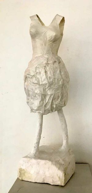 Die Arbeit von Ulla Kallert „Strukturen, alte Köpfe, alte Kleider – neue Wege“ versucht zu zeigen, was der Moment uns spüren lässt. Ulla Kallert sagt: „So geht es nicht weiter! Anhalten, neu denken und neu handeln lernen. Bevor das Neue sich zeigen kann, heißt es alte Strukturen zu erkennen, aufzubrechen und Neues zu Formen.“
