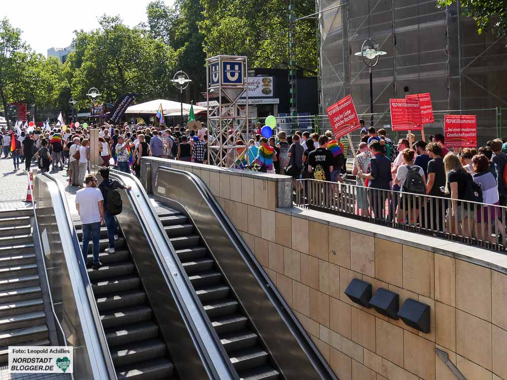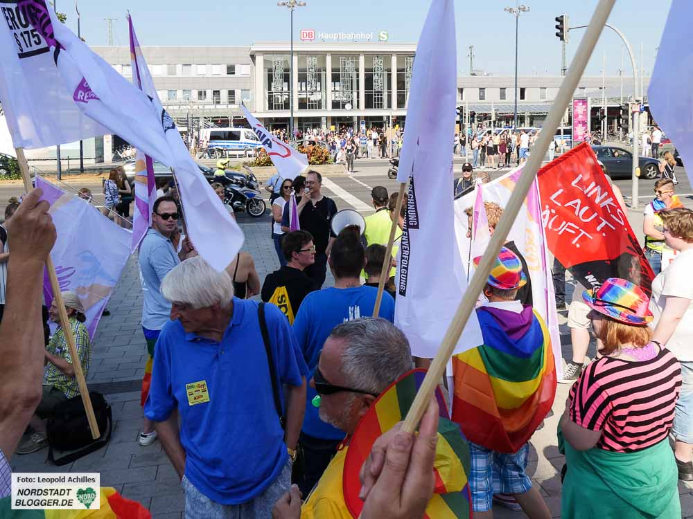 Es war bereits die zweite Demonstration in der Dortmunder Innestadt an diesem Samstag. Nach der Veranstaltung gegen TTIP und CETA startete der CSD um 14 Uhr unterhalb der Katharinenppe, gegenüber dem Haupteingang des Dortmunder Hauptbahnhofs.