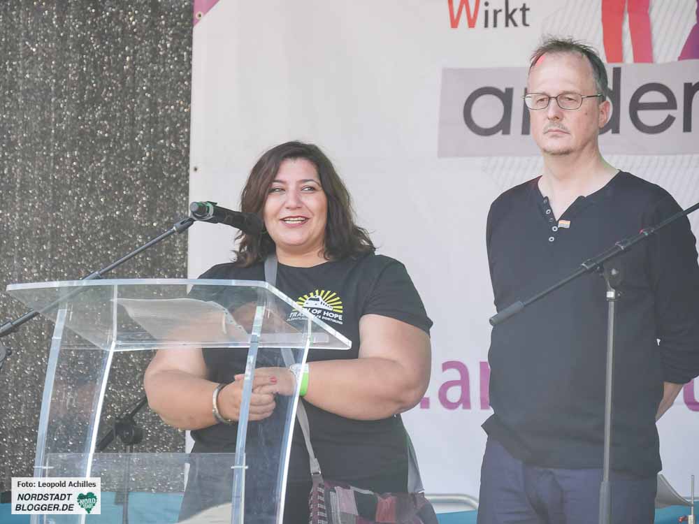 Das Wetter bescherte allen TeilnehmerInnen ein warmen und sonnigen Tag. Auf der CSD-Bühne sprachen neben SLADO-Vorstand Frank Siekmann und OB Ulrich Sierau auch der SPD-Bundestagsabgeordnete Marco Bülow und die diesjährige CSD-Schirmherrin Fatma Karacakurtoglu vom Verein ,Train of Hope‘.