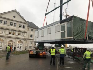 Stahlbungalow reist in der Nacht quer durch die Stadt an den neuen Standort am Hoesch-Museum