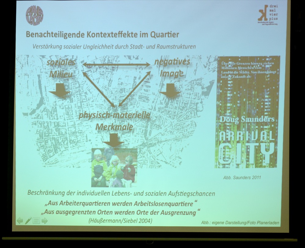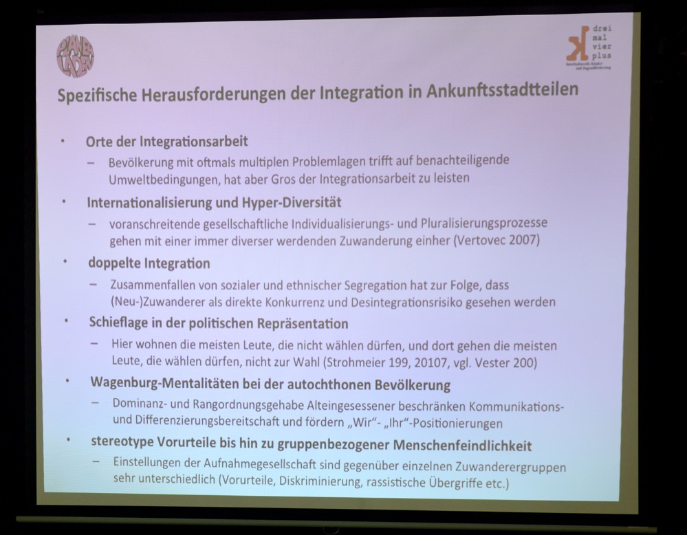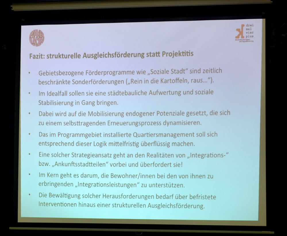 „Mehr Erfolgreiche ziehen weg, mehr Neue kommen nach. Weil – nicht obwohl – man erfolgreich arbeitet, verbessert sich der Stadtteil nicht. Die Bildungsarbeit ist super – weiter so. Aber man müsste auch andere Sachen machen“, riet der Bildungsforscher.