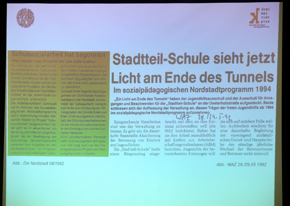 Prof. Dr. Reiner Staubach (Vorstandsmitglied Planerladen e.V.) hielt einen Rückblick auf die Arbeit der letzten 25 Jahre. Er erinnerte daran, dass es seit 1986 ein städtebauliches Nordstadtprogramm gebe. Es habe Gebäude, Plätze und Infrastruktur im Blick gehabt. „Trotz dieser Intervention wurde beobachtet – u.a. auch von der Polizei – dass es beim Zusammenleben eher problematischer wurde. Da waren Licht und Schatten – wie wir es auch heute kennen“, so Staubach.