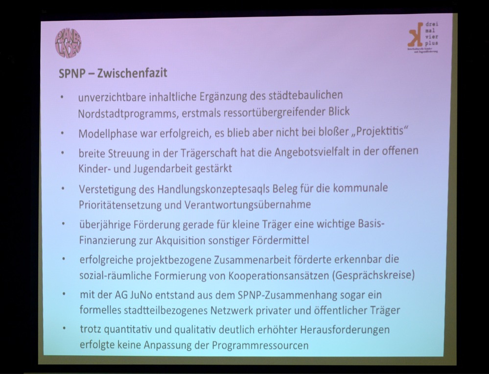 Ergebnis war 1989 ein sozialpädagogisches Konzept und die Einrichtung des Verwaltungs-Arbeitskreises für die Nordstadt. Das SPNP wurde dann vom Rat als Partnerschaft zwischen öffentlicher Hand und privaten Trägern auf den Weg gebracht.