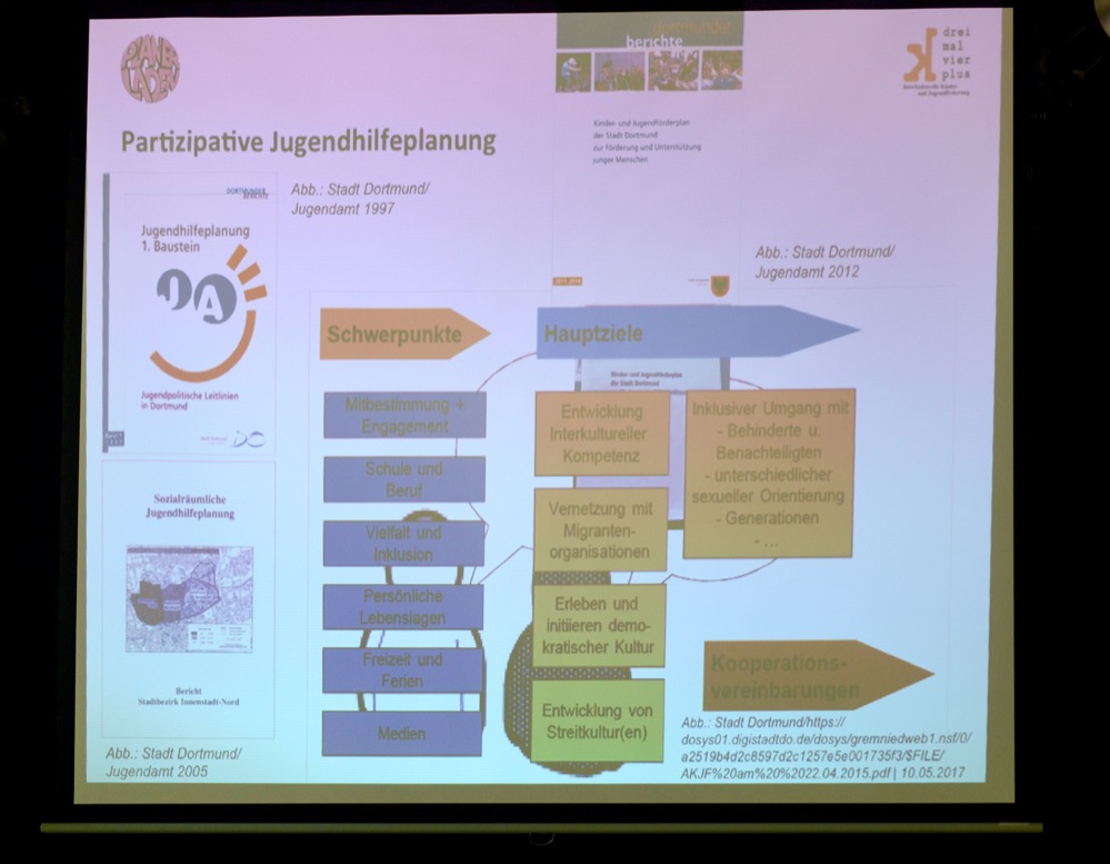 Fünf etablierte Jugendhilfeträger seien beteiligt und hätten erfolgreiche Projekte gemacht. Die Zahl der teilnehmenden Kinder und Jugendlichen zeige, dass sie gut angenommen würden. Es gebe eine starke Gemeinschaft für die und in der Innenstadt-Nord. Beratung, soziale Trainings, interkulturelles Miteinander. Ein Highlight sei die jährliche Inforallye mit 250 SchülerInnen aus weiterführenden Schulen, die an drei Tagen die Strukturen der Nordstadt kennenlernen.