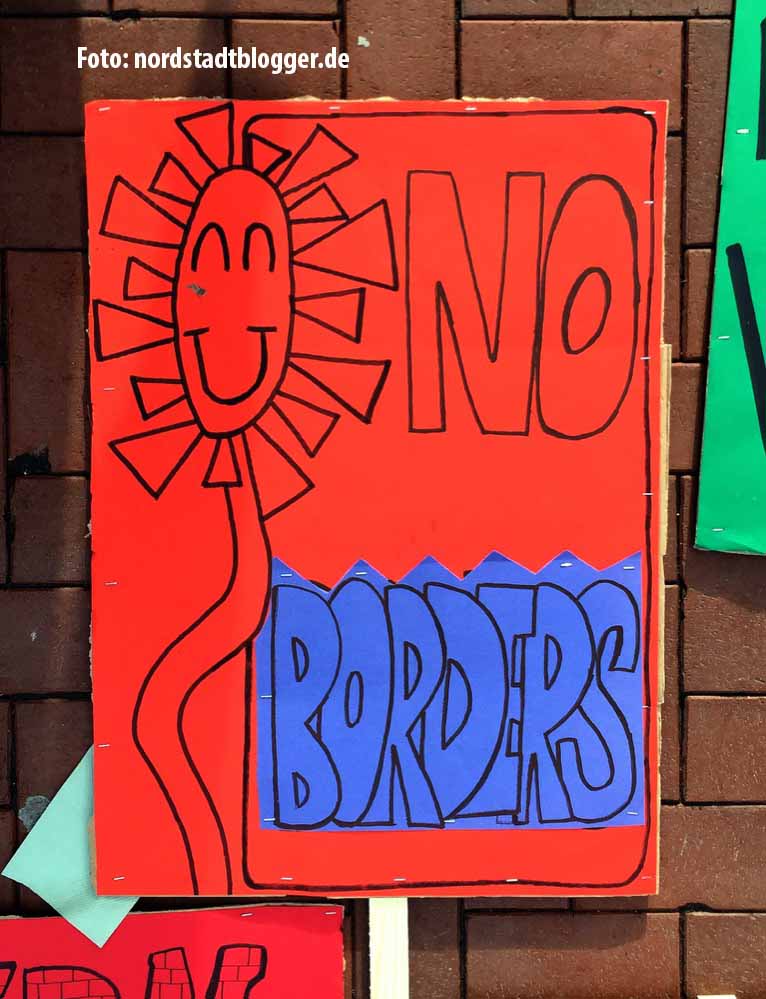 Verschiedene Redebeiträge, die in deutscher, englischer und französischer Sprache gehalten wurden, griffen die Solidarität mit den Protesten von Geflüchteten und die Unterstützung ihrer Forderungen auf. Während des Zuges durch die Stadt schlossen sich spontan weitere Dortmunderinnen und Dortmunder der Demonstration an und viele machten in Sprechchören klar: „Refugees are welcome here!“