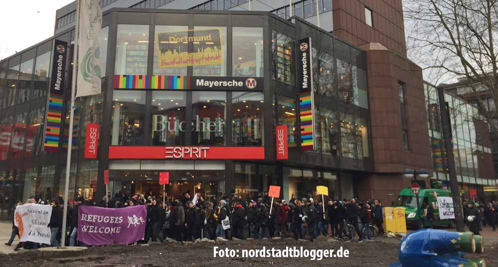 „Solidarität mit den Geflüchteten und ihren Protesten! Gegen Rassismus in Dortmund und überall!“ Unter diesem Motto haben am Samstag rund 280 Menschen in der Dortmunder Innenstadt demonstriert und ein Zeichen für Willkommenskultur gesetzt.