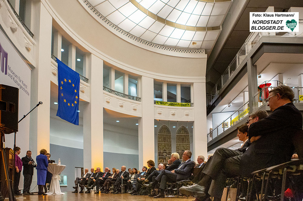Klaus Wegener, aktueller Präsident der Auslandsgesellschaft, und seit kurzem der Honorarkonsul von Ghana, eröffnete mit seiner Rede den offiziellen Abend. Ihm folgte Oberbürgermeister Ullrich Sierau in seiner dem Anlass angemessenen launigen Ansprache, um das Rednerpult Anne-Marie Descôtes, Botschafterin der Republik Frankreich in Deutschland zu Überlassen.