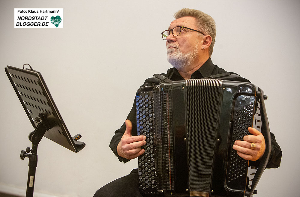 Véronique Elling beendete den wortreichen Abend mit ihren Chansons und Texten ihres Programmes „Paris chéri“. Amüsant, locker trug sie ihre Texte und kurzen Erzählungen vor. Ihr Gesang entführte dann vollends nach Frankreich, besonders mit ihrer Gesangs-Homage an Barbara und Edith Piaf. Sie schloss ihr Konzert, begleitet von einem Akkordeon, Jurij Kandelja, mit der von ihr neu getexteten Marseillaise.