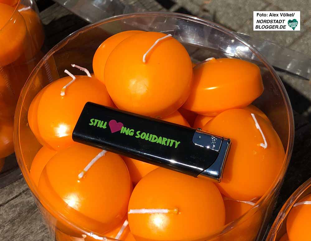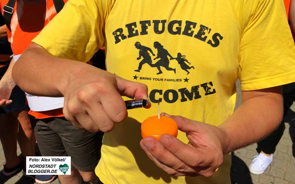 TeilnehmerInnen zündeten orange Kerzen zur Erinnerung an die Ertrunkenen an