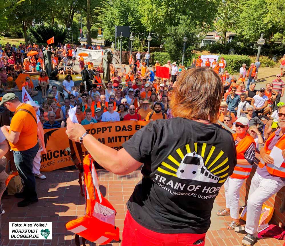 Ich möchte die Gelegenheit hier bei der Seebrücke nutzen, den Kreis „Flucht aus der Heimat, Flucht über das Mittelmeer, Flucht bis hierher“ zu schließen … und sehr kurz über die Umstände, der zum großen Teil über das Mittelmeer gekommenen Menschen sprechen, die hier in Dortmund angekommen sind.