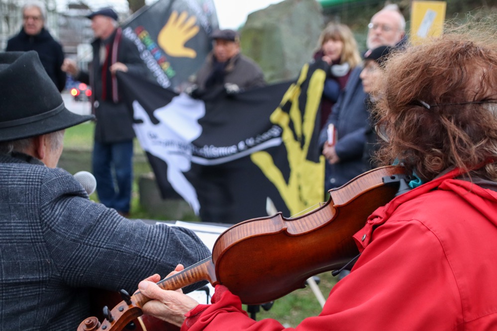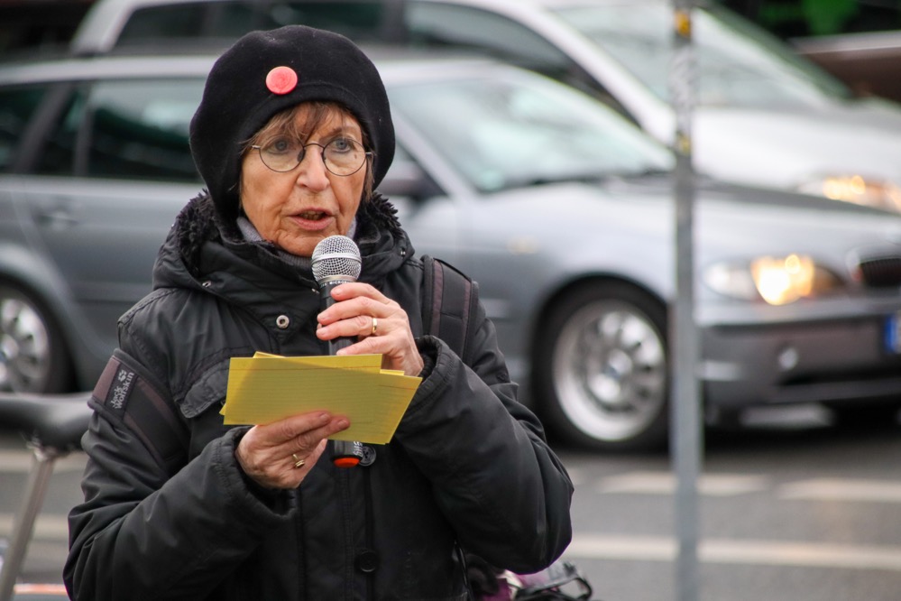 „Den Toten zum Gedenken, den Lebenden zur Mahnung“, steht darauf geschrieben. Auf diese Worte beruft sich Ula Richter vom BDgR, als sie die Veranstaltung eröffnet. Gedenken wollen sie dabei insbesondere den Opfern des Völkermordes an den Sinti und Roma – anmahnen wollen sie Erinnerungskultur, die diese oftmals außen vor lässt.