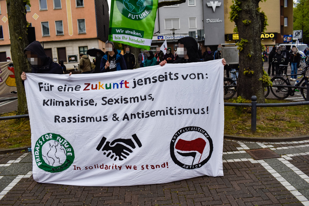 Doch auch andere Facetten wurden thematisiert: „Ein klares Nein zur Ausbeutung von Mensch und Natur. Ja zur friedlichen Lösung von Konflikten, ja zu Demokratie und sozialer Gerechtigkeit“, hieß es vom Bündnis Dortmund gegen Rechts. Sie wurden von VVN/BdA, Dortmunder Friedensforum, Flüchtlingspaten, Die Linke, DIDF, VMDO, VOLT und DKP unterstützt.