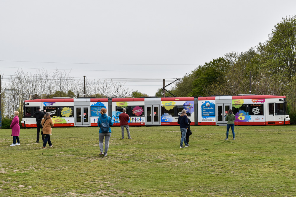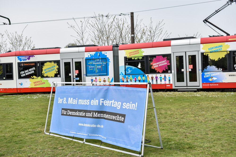 Er mahnte, dass die Anschläge in Halle, Kassel und Hanau zeigen, dass diese Arbeit nie ende und auch heute noch ein engagierter Einsatz für die Grundwerte der Demokratie und gegen menschenverachtenden Extremismus abverlangt werden. Die gestaltete Stadtbahn wird auch in den kommenden Wochen noch in Dortmund zu sehen sein.