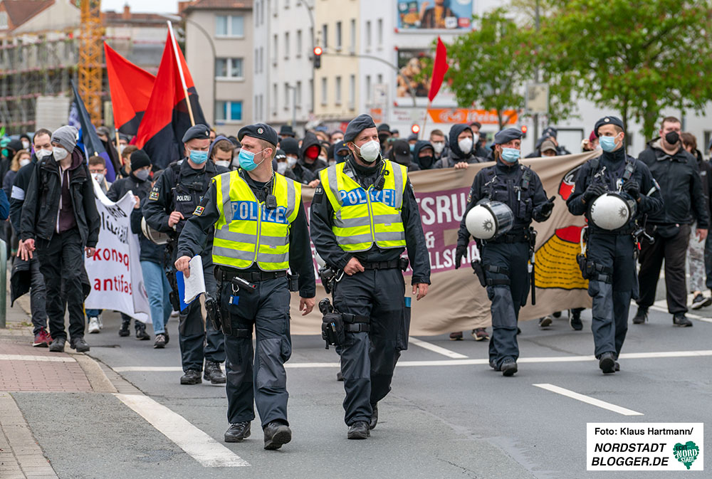 Auch warfen die Sprechenden der Polizei vor, zu stark gegen die Versammlung der Antifa-Gruppen vorzugehen, während sich in der Nordstadt Neonazis in einer Gruppe von 15 Personen scheinbar frei bewegen können. Diese Gruppe war zuvor im Umfeld des linken Szenelokals „Nordpol“ gesichtet worden, später allerdings durch die Polizei überprüft und von dem Ort wegbegleitet worden.
