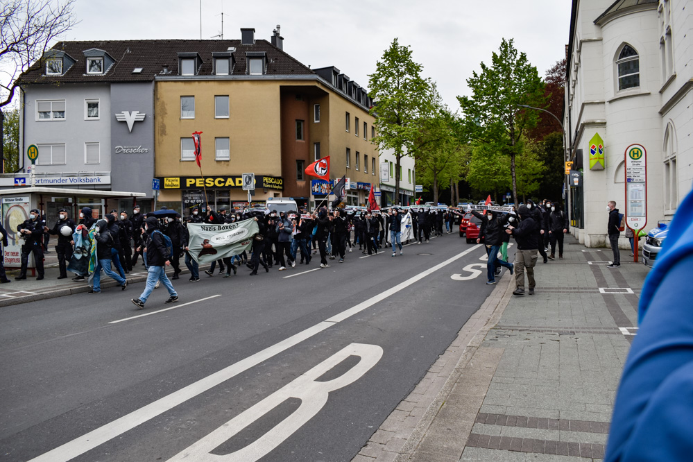 Aus diesem Grund fand im Anschluss an die Standkundgebung ein spontan angemeldeter Demonstrationszug statt. Dieser führte vom Wilhelmplatz über den Dorstfelder Hellweg und die Rheinische Straße in die Nordstadt und endete schließlich auf dem Nordmarkt. Auf dem Dorstfelder Hellweg kam es zu Außeinandersetzungen zwischen der Polizei und Akteuren des rechtsextremen Spektrums.
