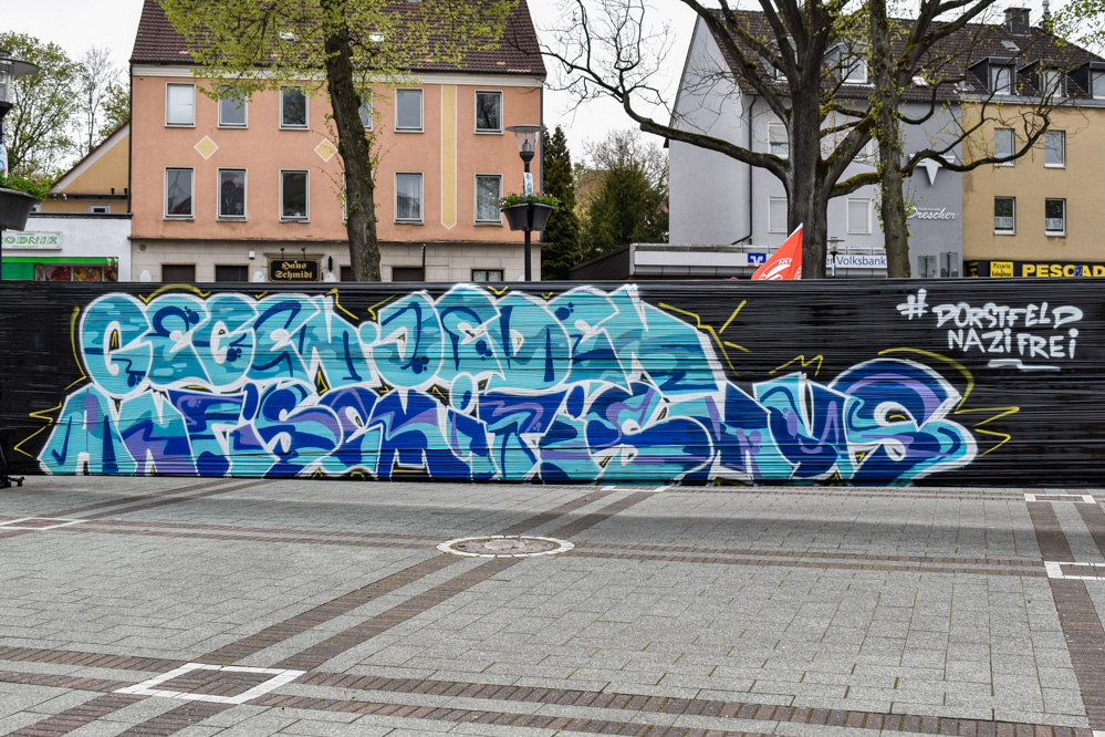 Für dieses Zeichen nutzten die Organisator*innen Musik und einer Graffiti-Aktion. Das Graffiti zeigte den Satz „Gegen jeden Antisemitismus“ und den Hashtag „#DorstfeldNazifrei“. Bei dieser Versammlung wurde spezifisch auf Redebeiträge verzichtet, um die Kunstaktion in den Mittelpunkt zu stellen, so Bezirksbürgermeister Ralf Stolze. An dieser Veranstaltung nahmen ca. 45 Personen teil. Die Versammlung verlief laut Polizei „ausnahmslos friedlich und ohne jegliche Störungen“.