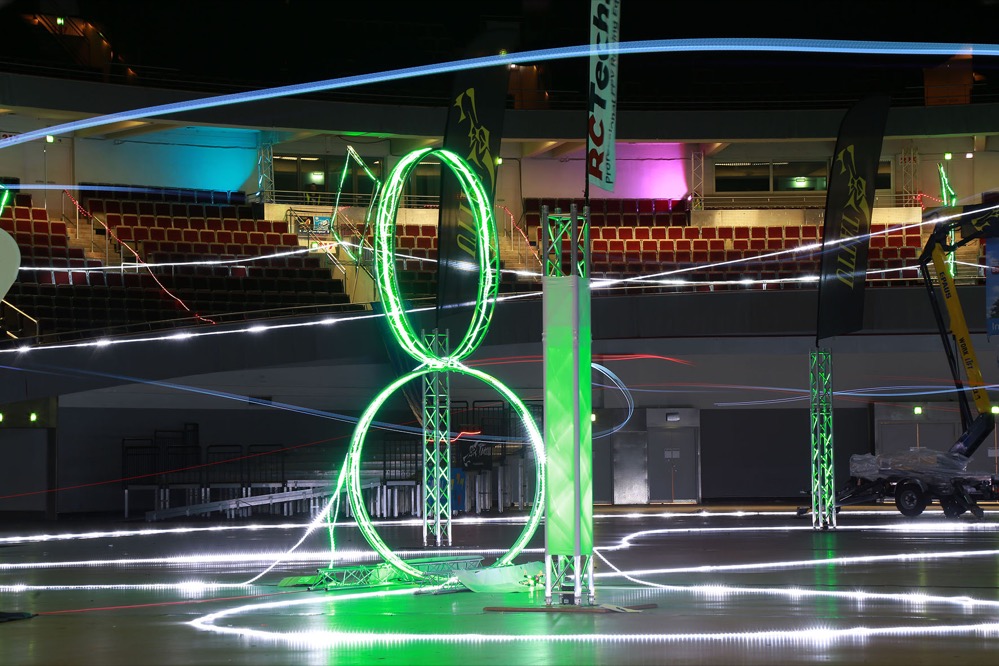 Nachdem es eine internationale Ausschreibung für die Teilnahme gegeben hatte, waren auf der „Intermodellbau“ insgesamt 80 Piloten aus neun Ländern an den Start gegangen: neben deutschen Piloten unter anderem Gäste aus den Benelux-Staaten, aus Italien, Frankreich und Lettland. Ihre Kopter waren auf der schwierigen Strecke in der Halle mit bis zu 100 Stundenkilometern unterwegs.