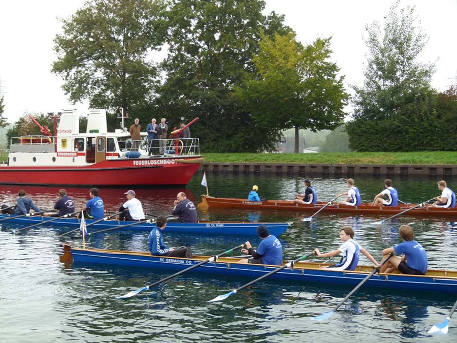 Der RC Germania Dortmund lud jetzt zum traditionellen Abrudern ein. Dabei gingen die Ruderer des RC Germania Dortmund und Hansa Dortmund sowie Kanuten des FS98 gemeinsam aufs Wasser. Bürgermeister Manfred Sauer, der die Wassersportler auf dem Feuerlöschboot begleitete, beendete offiziell die Saison und berichtete über diesjährige Ruder- und Kanuerfolge. Im Anschluss trafen sich alle Aktiven und Besucher im Bootshaus des RC Germania zu einem gemütlichen Beisammensein, wo fleißige Helfer für das leibliche Wohl sorgten. Ein rundum gelungener Saisonabschluss.