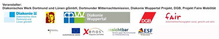 Heike Rabe vom Deutschen Institut für Menschenrechte in Berlin hat einen Überblick über das Thema, die rechtliche Einordnung und mögliche Handlungsoptionen gegeben, in der anschließenden Podiumsdiskussion haben Frank Neukirchen-Füsers, Geschäftsführer des JobCenter Dortmund, die Polizei Dortmund sowie Zolloberamtsrat Klaus Stiepelmann, Fachgebietsleiter Zoll Gelsenkirchen, Heike Tassilo vom Dortmunder Ordnungsamt, Andrea Hitzke von der Dortmunder Mitternachtsmission und- Szabolcs Sepsi vom Projekt Faire Mobilität des DGB, teilgenommen. Moderiert wurde die Diskussion von Andre Thielmann, vom Projekt – Unsichtbar – Bündnis gegen Menschenhandel zur Arbeitsausbeutung, der Diakonie Wuppertal.