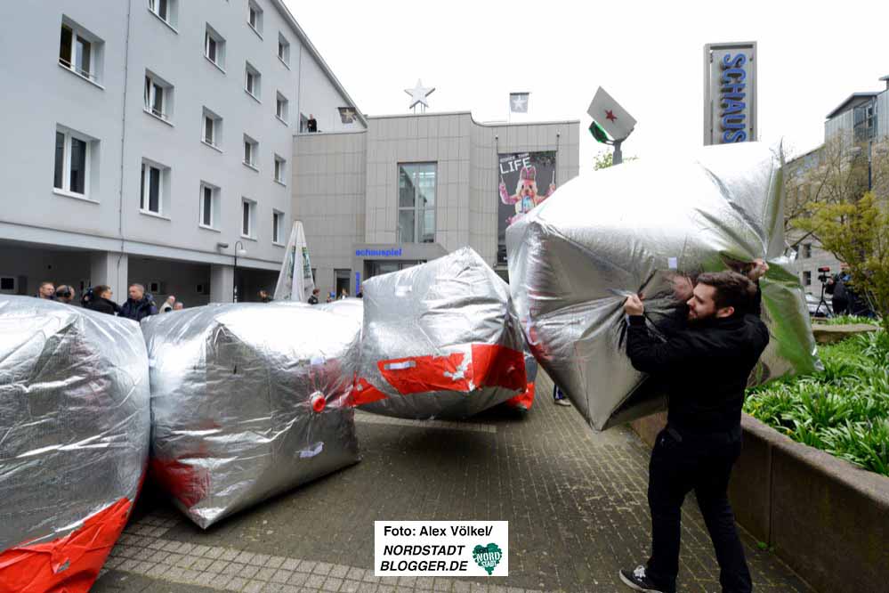 Das besondere an dem Projekt: Den ganzen Mai über wird die Dortmunder Zivilgesellschaft eingeladen sein, in einer eigens dafür eingerichteten Werkstatt im Schauspielhaus an den aufblasbaren Würfeln mitzubauen.
