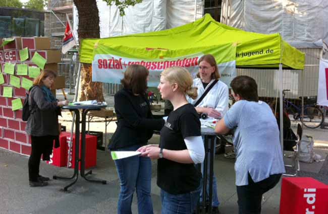 Am Samstag werden die Verdianer vor der Reinoldikirche mit einer großflächigen Bodenzeitung an einem Stadtplan von Dortmund skizzieren, wo sich die 10.000 Dortmunder Kirchen-Beschäftigten „verstecken“. Daneben werden Infos an die Dortmunder Bevölkerung verteilt.