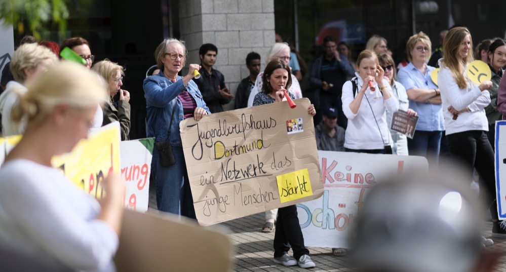 ver.di hat die Beschäftigten des Jobcenters Dortmund zu einer Protestkundgebung während ihrer Mittagspause aufgerufen. Die Kolleg:innen protestierten auf dem Platz vor der Bundesagentur für Arbeit an der Steinstraße 39 gegen die Sparpläne der Bundesregierung. Das Kabinett der Bundesregierung hat beschlossen, dass unter 25-Jährige ab 2025 statt wie bisher von den Jobcentern zukünftig von der Agentur für Arbeit betreut werden sollen.