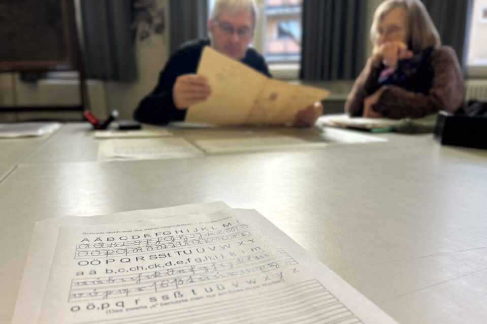 Die Expert:innen des Schulmuseums helfen, Texte aus der alten Schrift in die heutige zu übertragen. „Viele Besucher:innen bringen Dokumente mit, die für sie eine persönliche oder historische Bedeutung haben, aber sie können die Texte nicht selbst lesen“, erklärt Michael Dückershoff, der Museumsleiter und einer der Schriftleser.