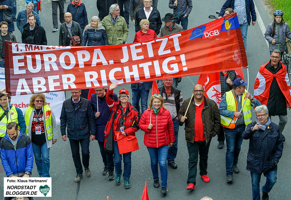 In seiner Rede ließ er so gut wie keinen Bereich des alltäglichen Lebens aus. Gut bezahlte Arbeit und Frieden, Löhne für Frauen und Steuerpolitik, Streichung von Sozialleistungen und Arbeitszeiten: Gemeinsam müsse man in der Europäischen Union für die Gleichstellung der Frauen kämpfen, für eine gerechte Gesellschaft, gegen Lohndumping, gegen Tarifflucht von Unternehmen, gegen Altersarmut, gegen Rassismus und Wohnungsnot.