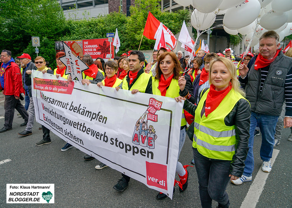 Die Demonstration zum Tag der Arbeit des DGB 2019 führt vom Platz der Alten Synagoge zum Westfalenpark. Fotos: Klaus Hartmann