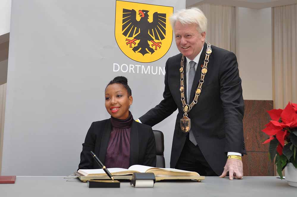 Marie N’Diaye sei eine „hervorragende Wahl“ und stehe in guter Tradition mit Nelly Sachs, Elias Canetti und Nadine Gordimer, sagte OB Ullrich Sierau – drei Preisträger, die später mit dem Nobelpreis für Literatur ausgezeichnet wurden.