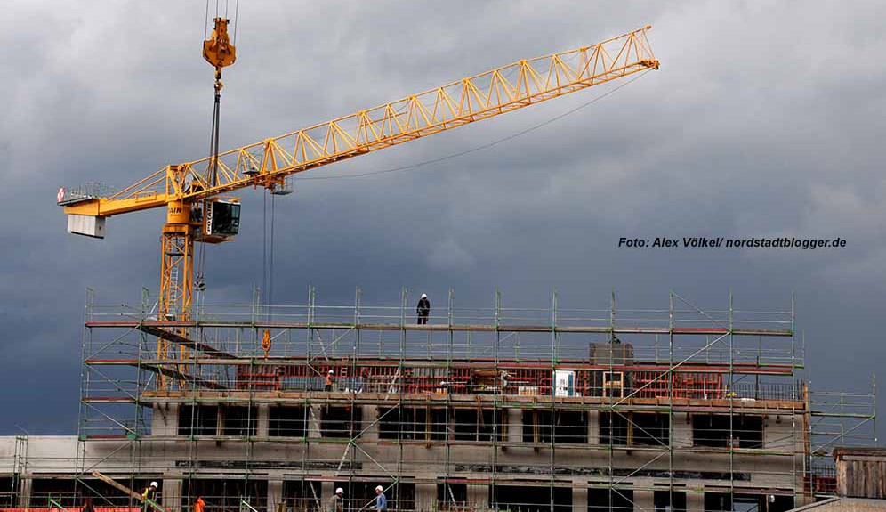 Die Bauarbeiten für die Berufskollegs im Union-Viertel sollen bis 2016 abgeschlossen sein. Foto: Völkel