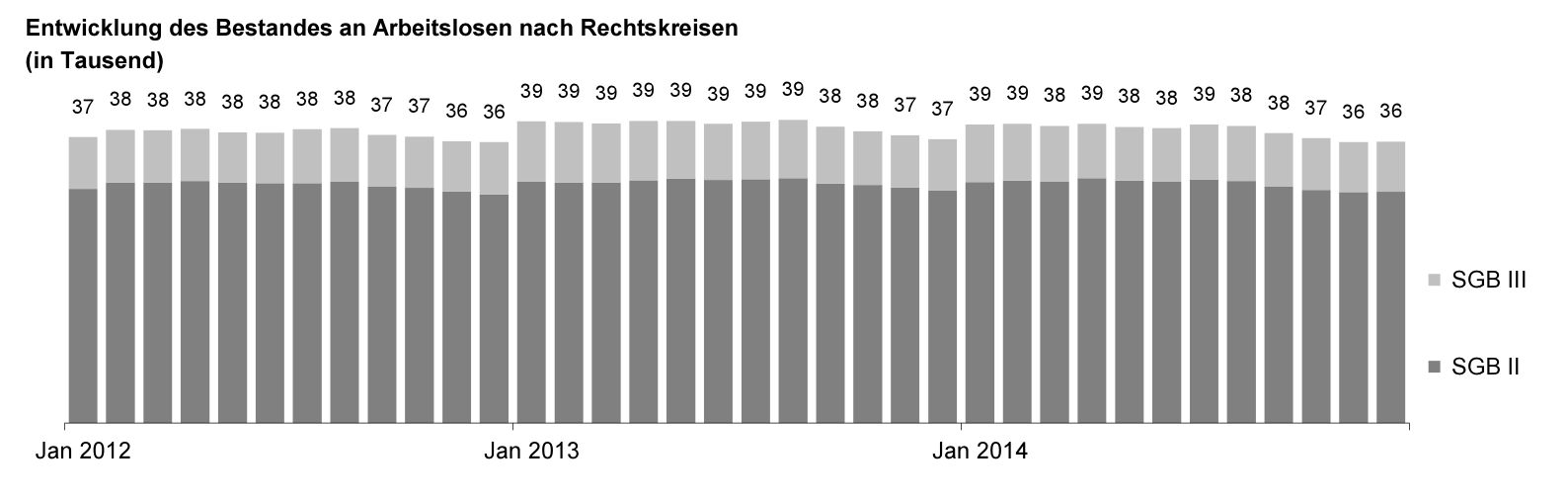 In der Jahresbilanz der Arbeitsagentur für 2014 lag die durchschnittliche Arbeitslosenquote bei 12,8 Prozent (2013: 13,2 Prozent), damit waren im Jahresschnitt 37.956 Dortmunder arbeitslos. Für Arbeitsamtschefin Astrid Neese bleiben die Herausforderungen bestehen: Denn „von dieser günstigen Entwicklung konnten Arbeitslose noch nicht in dem Maß profitieren, wie wir es uns wünschen“. Gleichzeitig gelte es, das Nachwachsen in die Langzeitarbeitslosigkeit zu vermeiden.