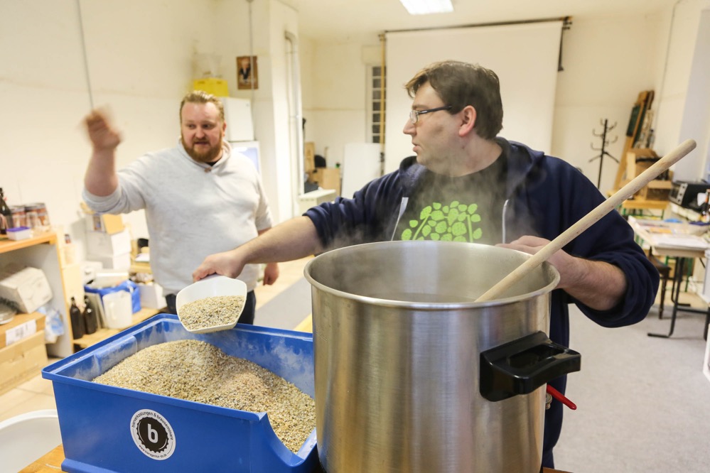 Für ein Pils – „Das ist schon champions league“ – brauche man ein ausgefeiltes Kühlsystem. Das Bier, das er mit seiner SeminarteilnehmerInnen braut, lagert gut im Bottich in der Küche und schmeckt immer anders. Kein Wunder: Gibt es doch 250 Hopfensorten, viele Hefestämme und viele Gerstensorten.