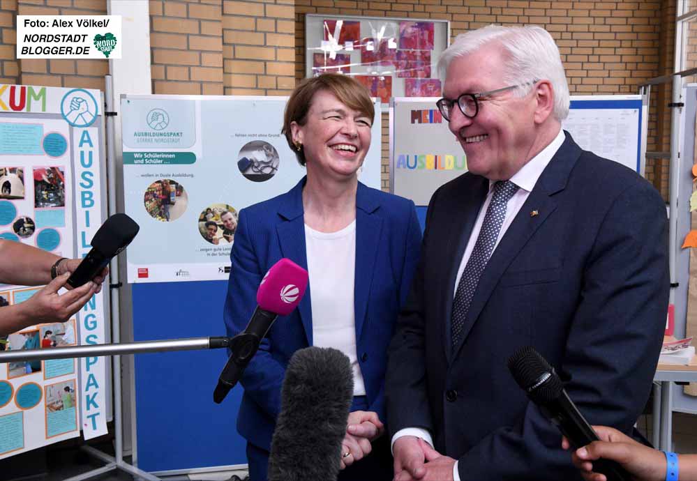 „Starke Nordstadt“, so die Bezeichnung des Ausbildungspaktes an der Anne-Frank-Gesamtschule. Und da scheint was dran zu sein, wenn sich immerhin das Staatsoberhaupt der Republik dazu entschließt, die bundesweite Themenwoche zur Berufsausbildung mit seinem Informationsbesuch gerade hier, im viel gescholtenen Norden der Stadt zu beenden. Ein Zeichen, das Mut macht.