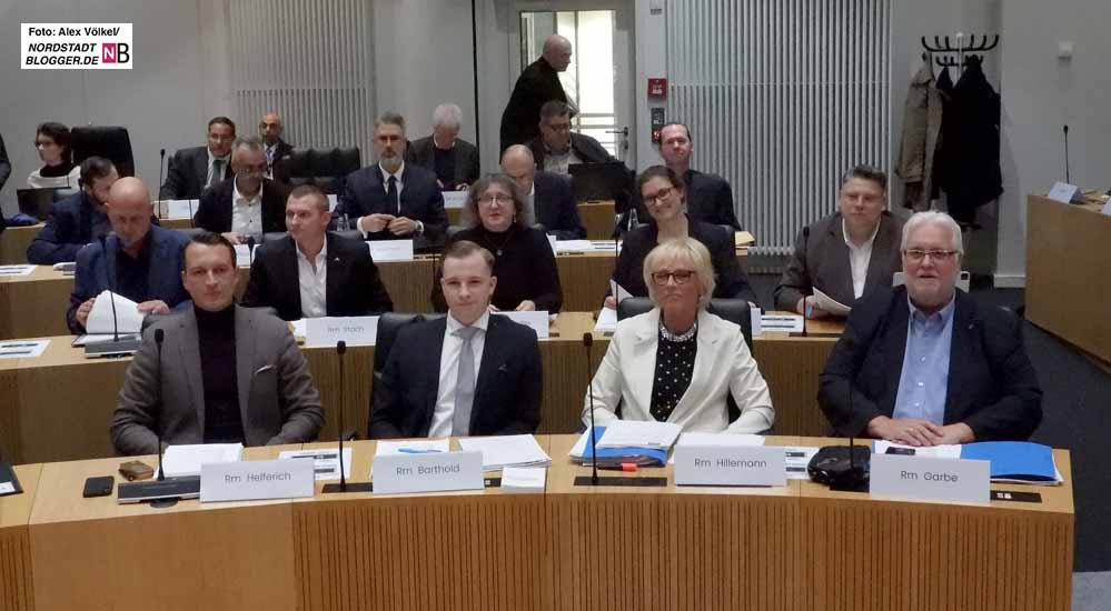 Blick auf die AfD-Fraktion in der konstituierenden Ratssitzung am 13. November 2025 Foto: Alexander Völkel für Nordstadtblogger.de