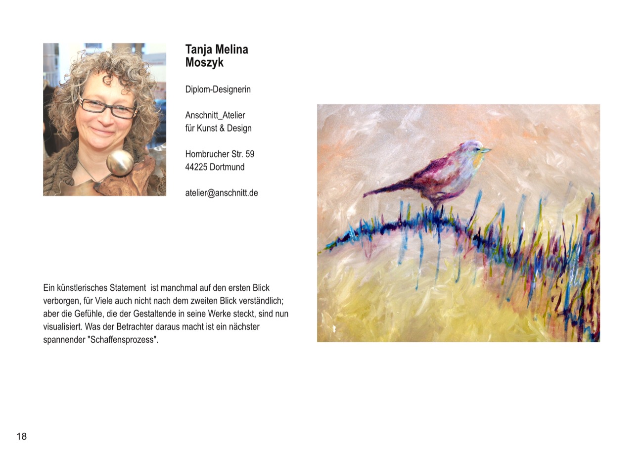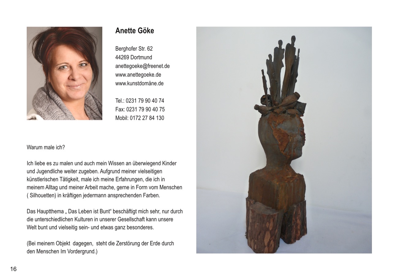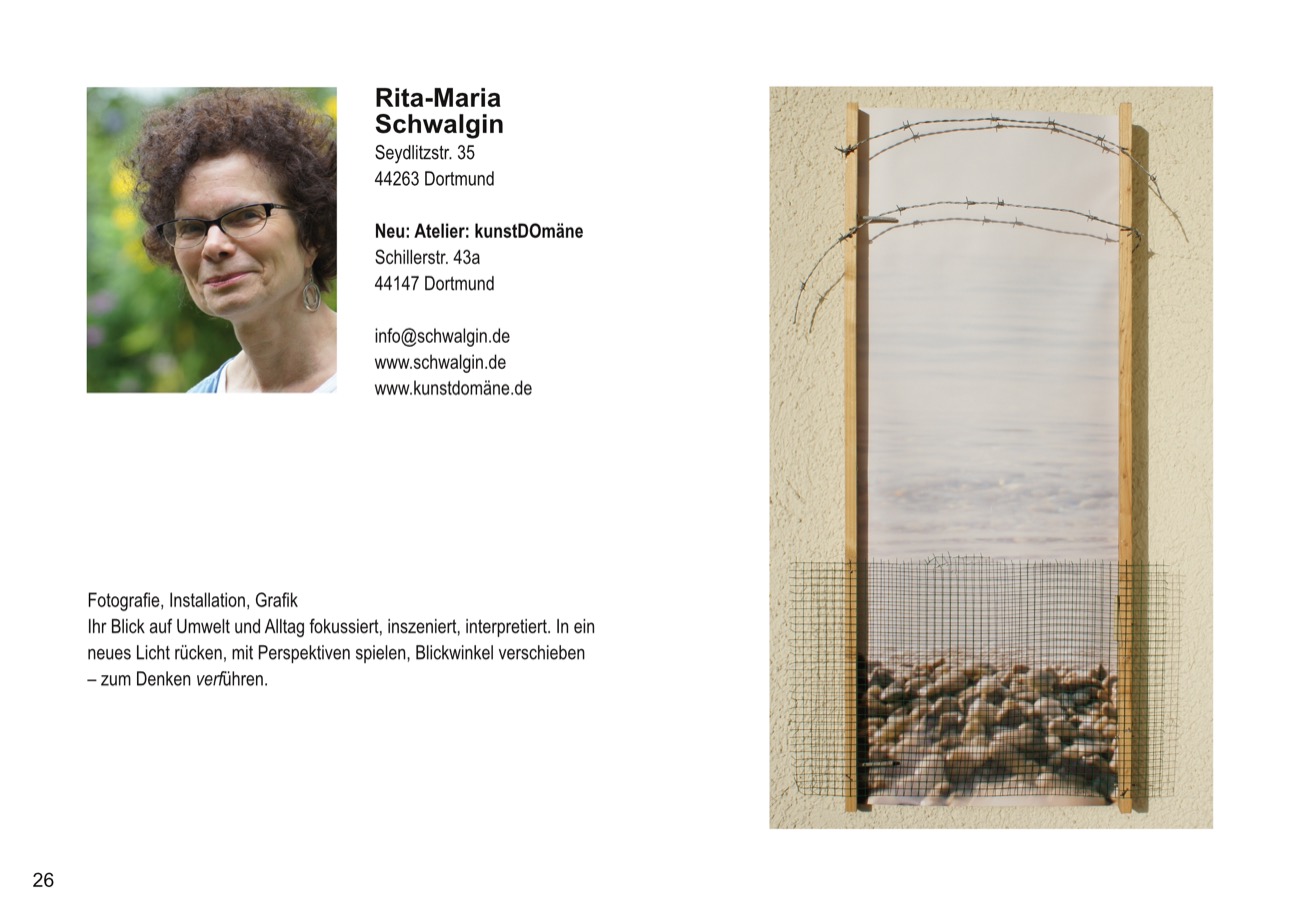 Folgende KünstlerInnen aus der Dortmunder Kunstlandschaft sind in der Ausstellung vertreten: Beate Bach, Marlies Blauth, Bettina Brökelschen, Era Freidzon, Anette Göke, Tanja Moszyk, Franz Ott, Almut Rybarsch-Tarry, Silke Schulz, Rita-Maria Schwalgin, Cornelia Suhan/Karin Hessmann, Gabriela Wollenhaupt.