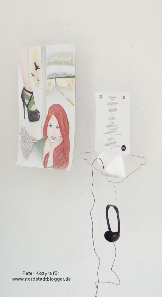 Den Besucher erwarten viele unerwartete Werke der Nachwuchsdesigner: gewitzte Handyhalterungen, kreative Wanduhren, einfallsreiche Laden-Design-Lösungen, drei Filme in Dauerschleife, Möbelentwürfe für Schuhläden, Gips-, Ton- und Pappskulpturen in der Gipswerkstatt zum Thema „Zwischenraum“ , bis hin zum Filmset „Omega“, in dem am kommenden Mittwoch tatsächlich ein 25-minütiger Film gedreht werden wird, sind nur wenige der vielen Exponate.