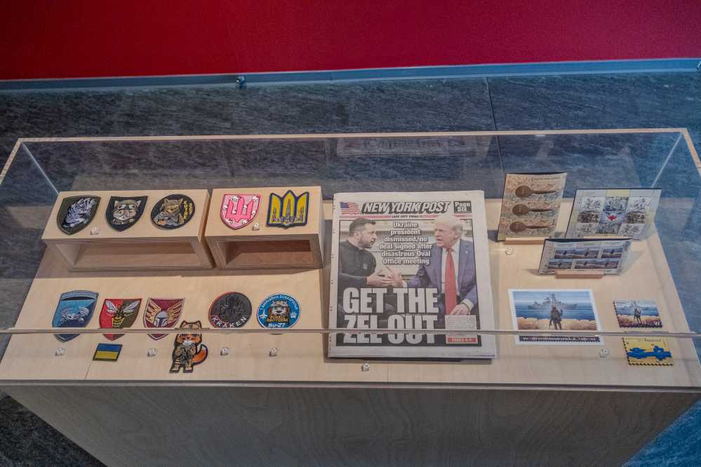 Neben Comics werden auch symbolhafte Werke gezeigt, die das gesellschaftliche Verhältnis zum Krieg spiegeln. Ein Beispiel ist das Meme der Heiligen Javelina, das zu einem Symbol des zivilen Widerstands wurde. Ihr Bild findet sich heute auf Souvenirs, deren Verkaufserlöse der Hilfe für die Ukraine zugutekommen.