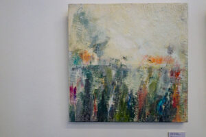 Susanne Beringer hat mit pigmentiertem Bienenwachs ihr Werk „Werden und Vergehen“ entstehen lassen, setzt auf helle Farbgebung und bietet den Betrachtenden eine Vielzahl von Interpretationsmöglichkeiten.