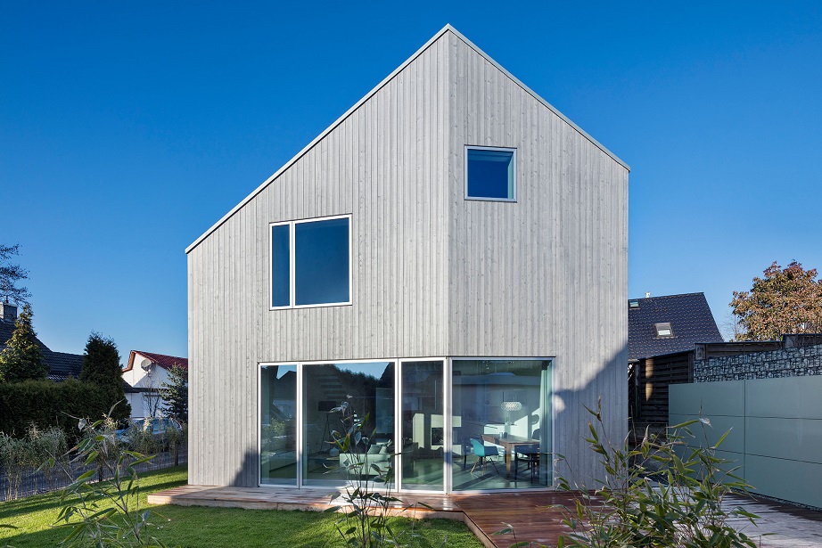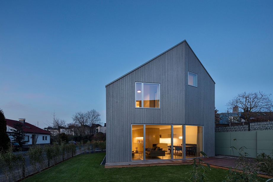 Jury: Ein Haus wie eine Skulptur, das mit bescheidenen Mitteln aus verschiedenen Blickwinkeln immer neue überraschende Perspektiven zeigt. Die Bauaufgabe auf einem schwierigen engen Grundstück war Herausforderung und Chance zugleich. Die Lösung ist so ungewöhnlich wie aufregend.