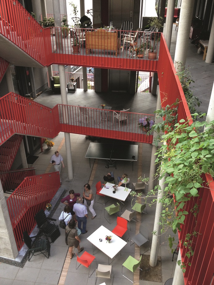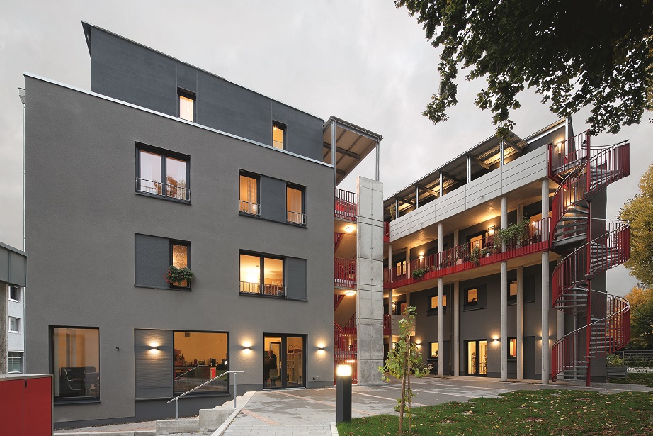 Jury: Ein gutes gelungenes Wohnprojekt, das vor allem durch den baulich manifestierten Gemeinschaftsgedanken konzeptionell überzeugt. Städtebaulich gut eingepasst. Ein stimmiges Verhältnis zwischen halböffentlichem und privatem Raum schafft eine einnehmende Atmosphäre. Sehr emotional. Ein gutes Beispiel für neue Wohn- und Lebensformen.