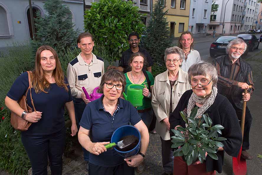 „Wir wohnen gerne hier in der Nordstadt, nicht nur weil unsere Wohnungen so stadtnah und zentral liegen. Deshalb haben wir ein Interesse daran, unser Wohnumfeld zu verschönen“, sagt Edeltraud Pohl. „Ja, wir wollen ein positives Zeichen setzen“, nicken die Baumscheiben-Kollegen Hardy Maaser und Dagmar Schmitz.