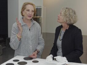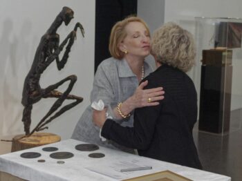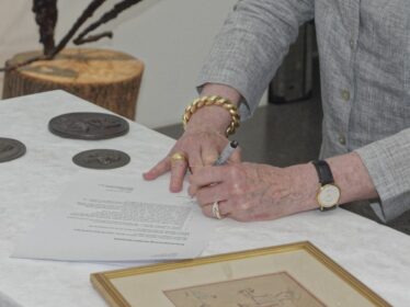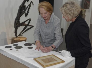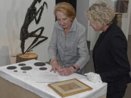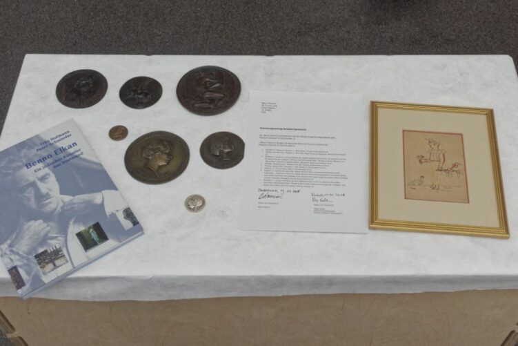 „Es ist uns eine Freude, für unser Museum und die Stadt Dortmund, dass wir unsere Sammlung von Benno Elkan erweitern können“, betonte Regina Stelter. Die stellvertretende Direktorin des Museum-Ostwall im Dortmunder U unterzeichnete mit Beryn Hammil, Enkeltochter von Benno Elkan, am 11. Juni 2018 öffentlich die Schenkungsurkunde an das Museum-Ostwall. Das Museum kann damit seine Sammlung von Werken des in Dortmund geborenen Benno Elkan erweitern. Es handelt sich dabei um Plaketten und ein Stickbild von Elkan.