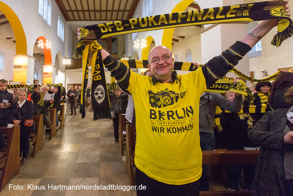 BVB – Fans feiern vier Tage vor dem Pokalfinale unter dem Motto „Auf dem Weg nach Berlin – Wir lassen nichts unversucht“ einen ökumenischen Gottesdienst. Anschließend zogen die Fans zum Borsigplatz