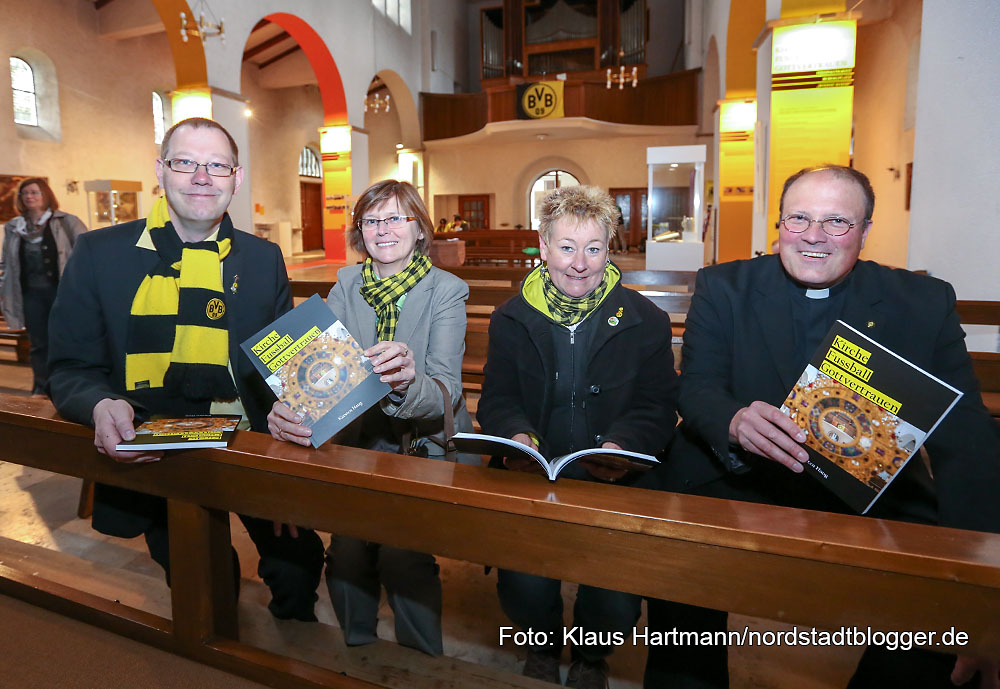 Zum 100jährigen Bestehen von Borussia Dortmund wurde auch die Dauerausstellung „Kirche – Fußball – Gottvertrauen“ in der Dreifaltigkeitskirche in der Nordstadt initiiert. Sie erfreut sich großer Beliebtheit. Jetzt gibt es ein gleichnamiges Buch dazu – Autor ist Gemeindereferent Karsten Haug. Es wurde im Rahmen des extrem gut besuchten ökumenischen BVB-Gottesdienstes vorgestellt.